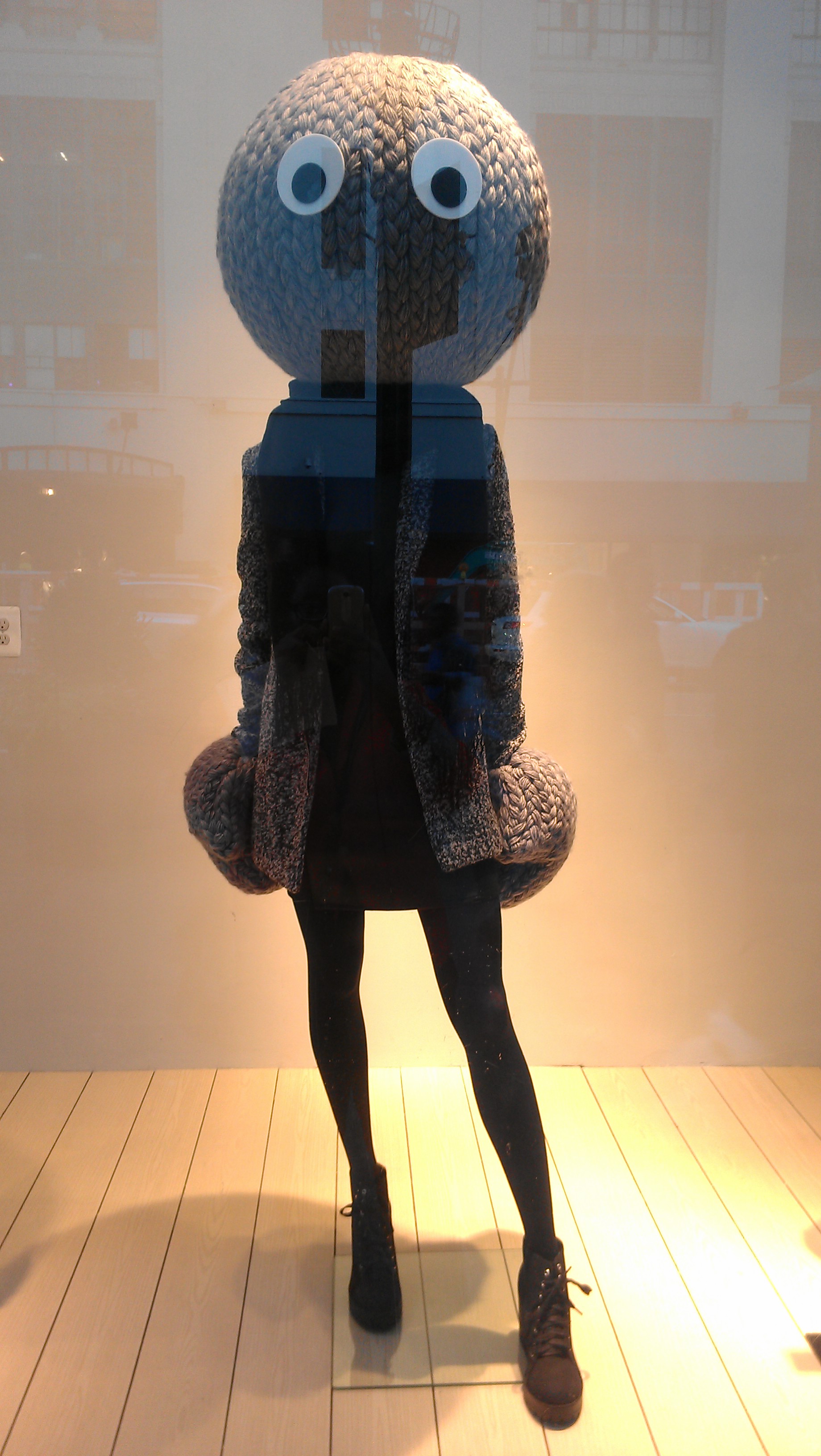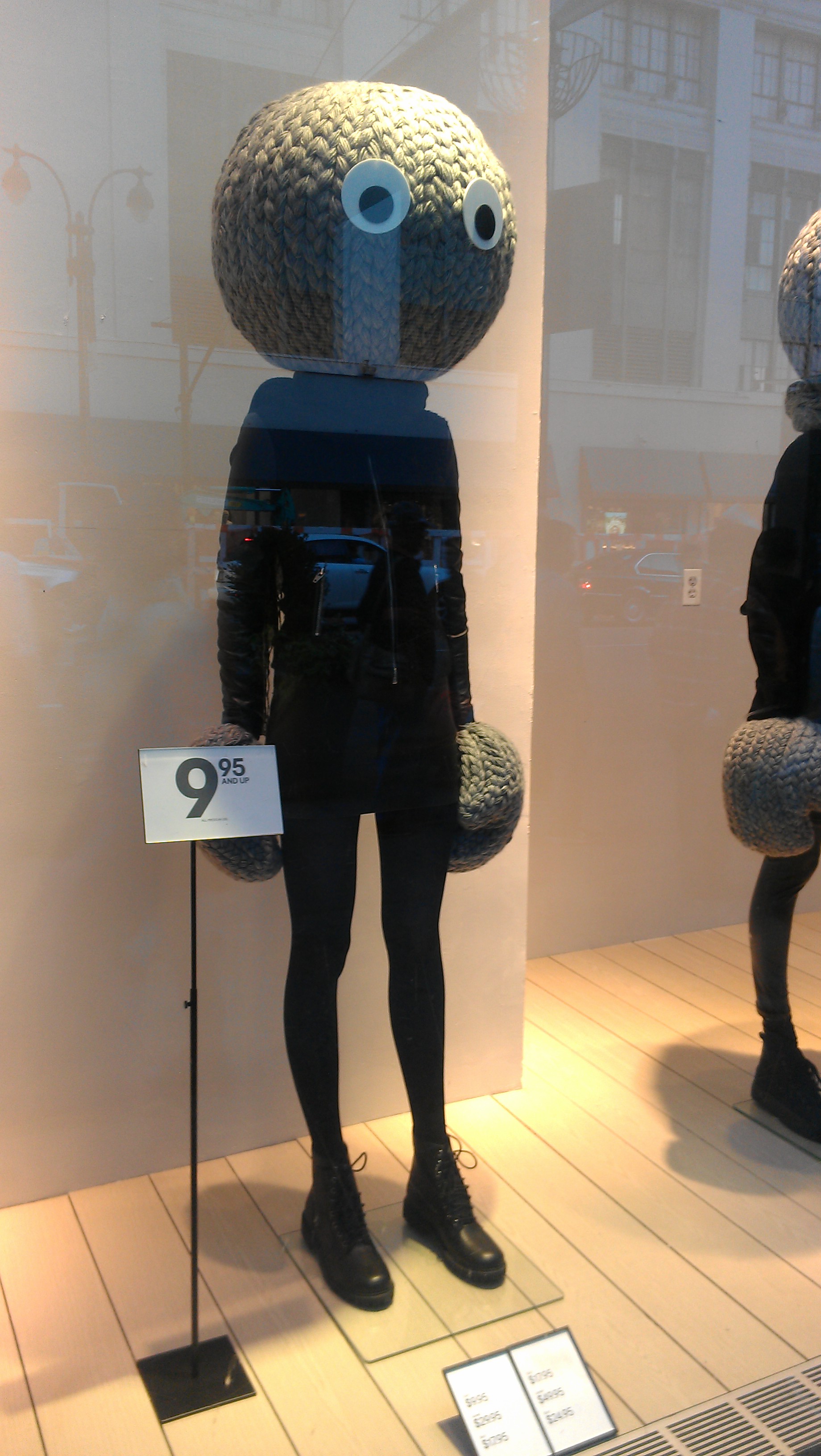 H&M dressed up their retail windows with mannequins sporting enormous knitted heads and mittens.